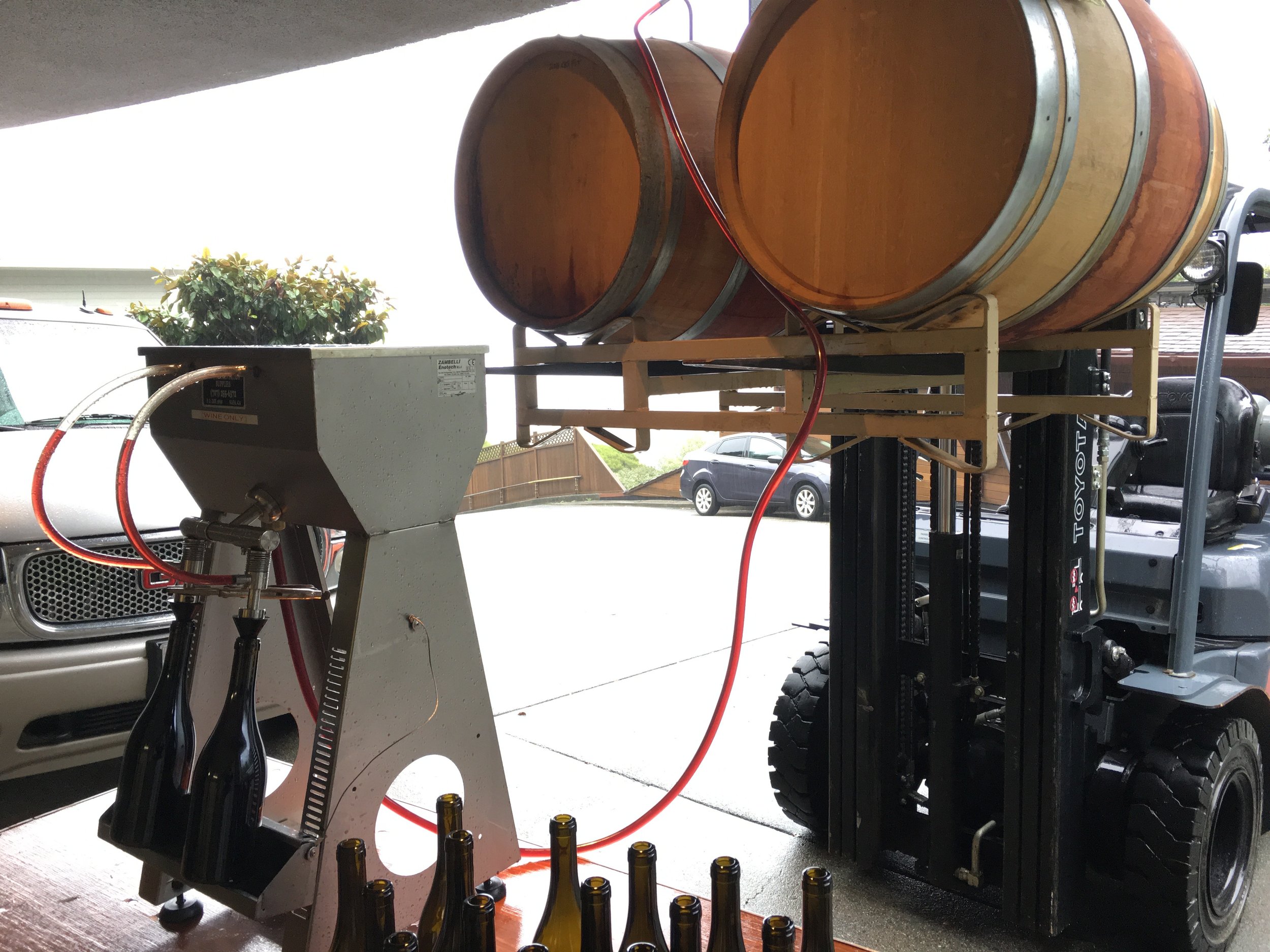 After two homemade vintages and countless friends asking us to make our wines more available to all, we moved our operations to a bonded, custom crush facility, which basically allows us to “rent” space to make and store our barreled wines, while complying with all applicable alcoholic beverage laws. The more advanced technologies in the custom crush facility also allowed us to add both a Chardonnay and a Rosé of Pinot Noir to our offerings, which are a bit more complex to make vs the still wines we began with.